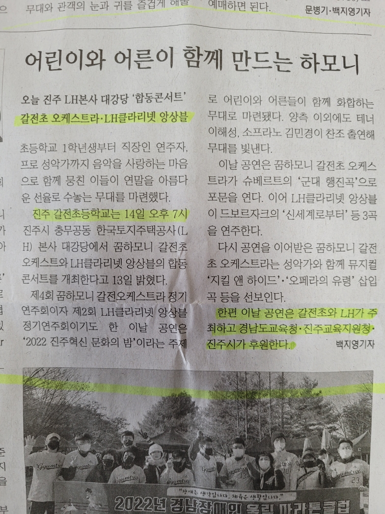 진주 LH본사서 14일 갈전초·LH클라리넷 ‘합동콘서트’ - 경남일보 - 우리나라 최초의 지역신문 (gnnews.co.kr)