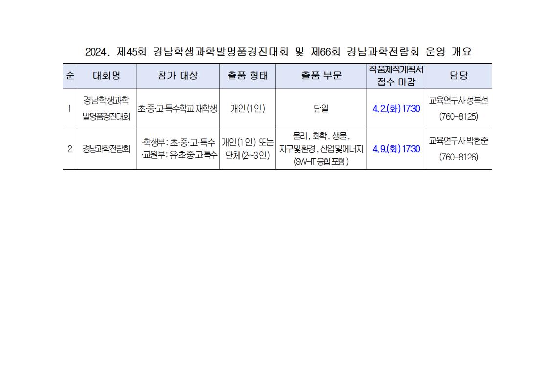 2024. 제45회 경남학생과학발명품경진대회 및 제66회 경남과학전람회 운영 개요 안내